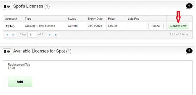 If you had a 2-year license, you will need to cancel the 2-year license and purchase a 1-year license. We recommend making a note of your Person # from the "My Info" section prior to cancelling in the event you need to log back in before completing the transaction. Please click the Cancel button, and then select the Cat/Dog 1 Year License by clicking the Add Button below.