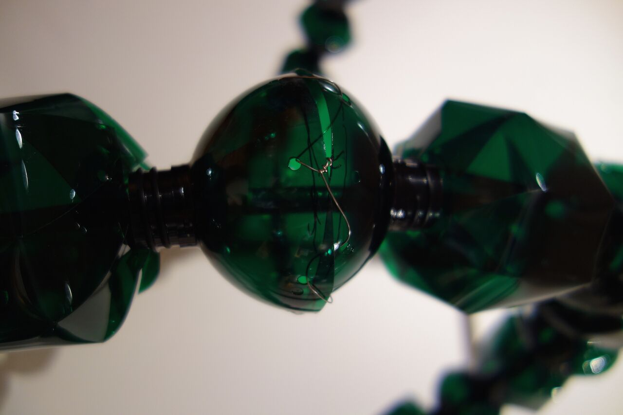 Kait describes her work Wandering Diatoms by saying "These scale morphed phytoplankton (planktos, the Greek word meaning wanderer or drifter) have appeared in the trees to remind us of their life sustaining powers of oxygen production, similar to the trees, but more ephemeral in their life span and sensitivity to environmental imbalance. As people walk past the work, they will look up and discover this incongruous sight of this microalgae out of the water."
