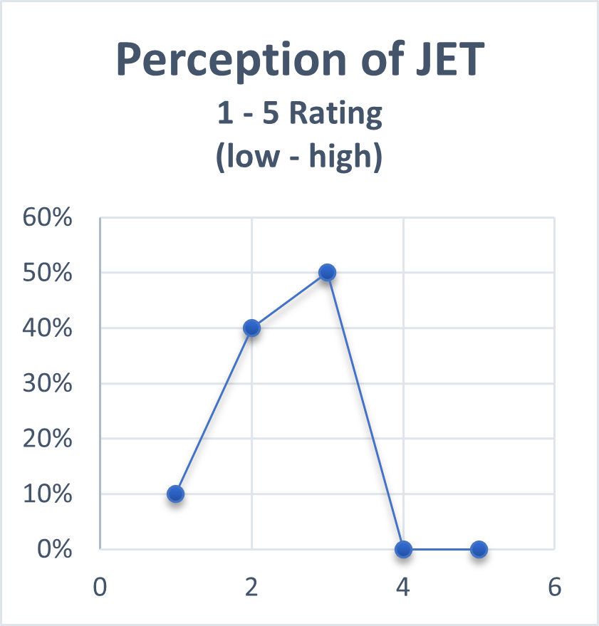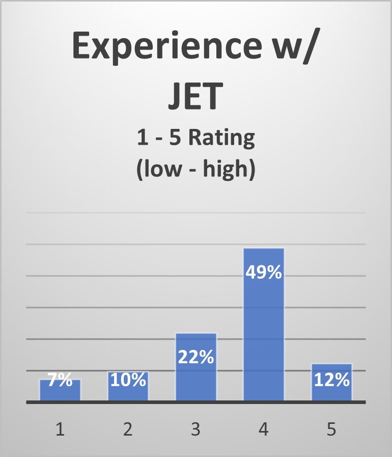 While the perception of JET data reflects a lower rating, the experiences with JET data is on the higher end.