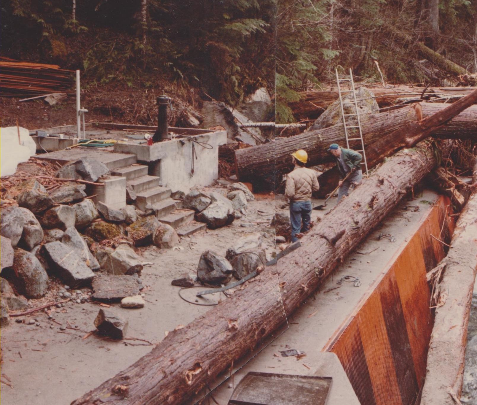 Intake structure and diversion dam on Newhalem Creek - Seattle Municipal Archive 17518
