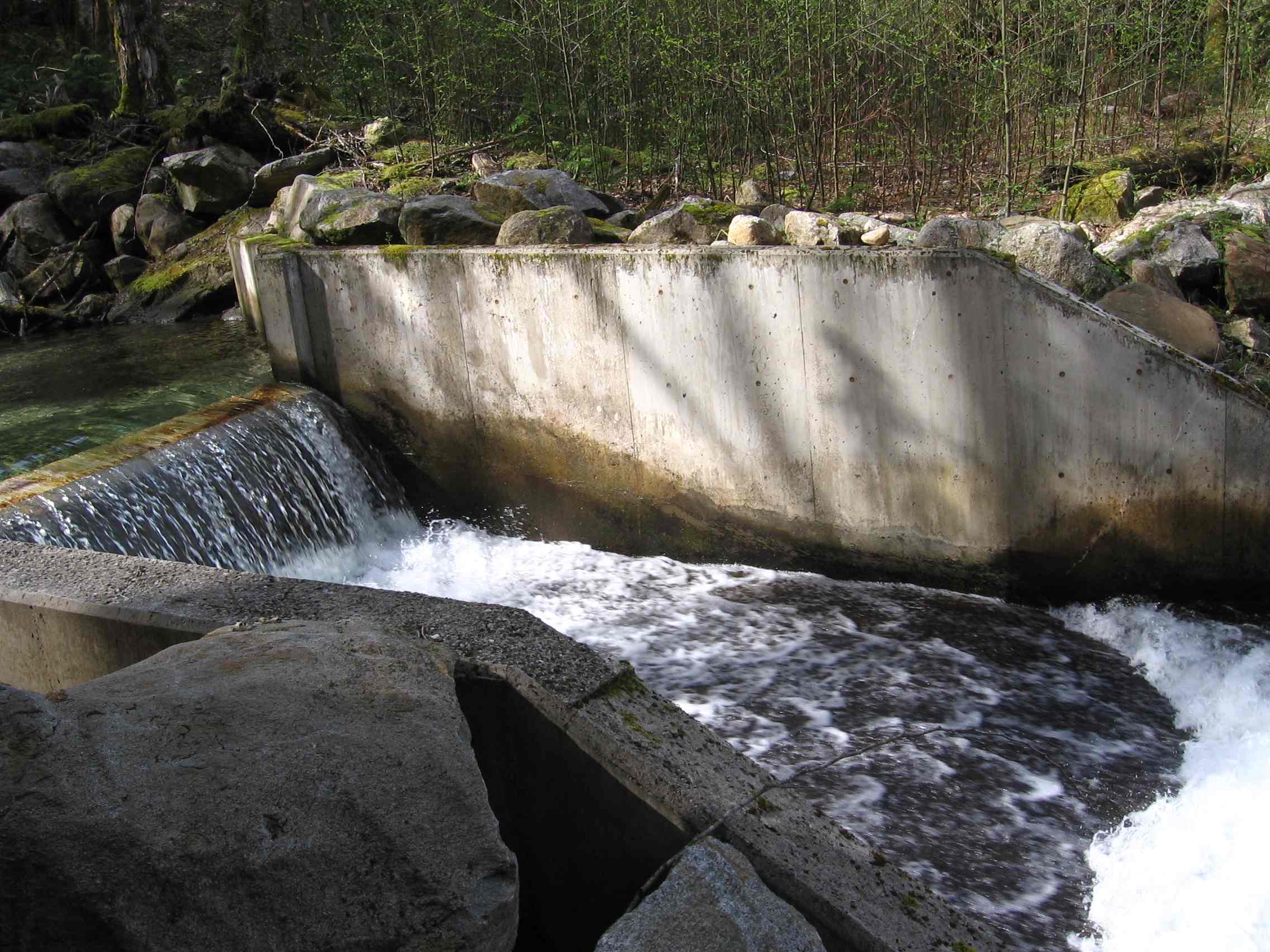The automatic gate controlling water intake at the dam stops functioning properly. The Newhalem Creek Hydroelectric Project ceases power production.