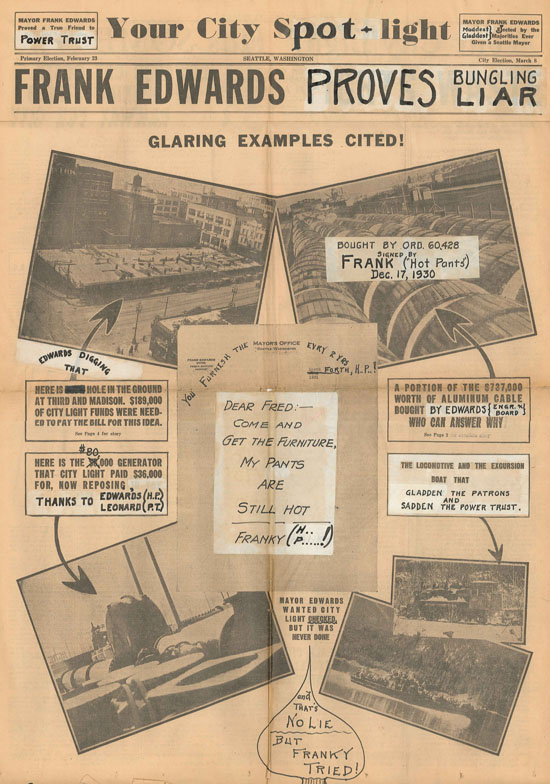 Frank Edwards bears the distinction of being one of only two Seattle mayors to be recalled by voters. First elected in 1928, he won a second two-year term in 1930, but would be removed from office before completing his tenure.