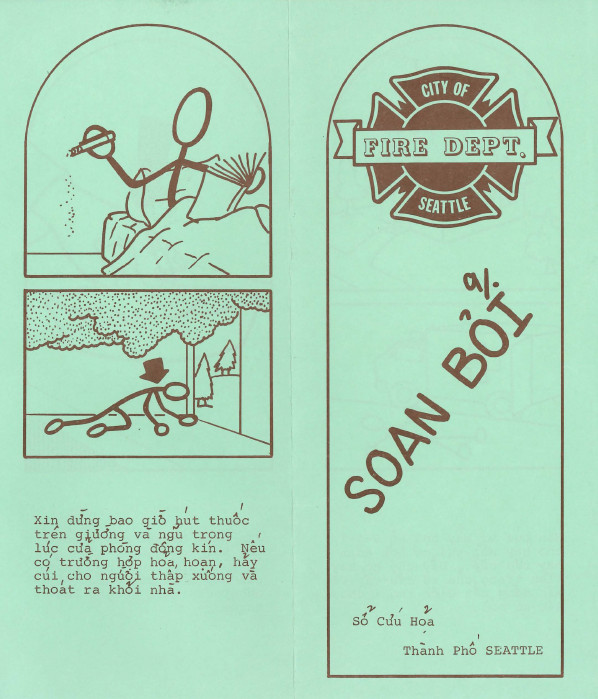 A memo in a 1982 Fire Department folder relayed directions from Fire Chief Swartout to develop a fire safety education program targeted specifically at refugees newly arrived in Seattle. The suggestion from the chief was for presentations at apartment buildings that had residents primarily from refugee communities, as well as outreach through community newspapers. Jim Sherman, a fire inspector from the Education Office, was directed to design a program and budget.