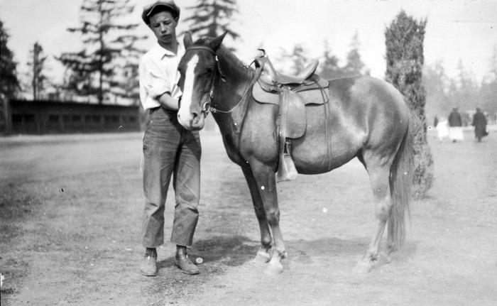 Boy with pony at Woodland Park Zoo, circa 1920s