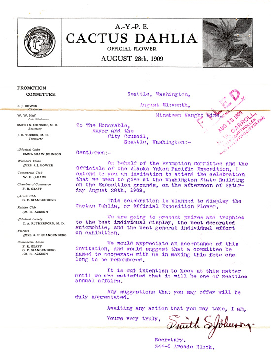 The AYPE was a success by most standards. Commemorative days were set aside to honor organizations, professions, and ethnic communities. The Mayor was invited to a celebration of the Official Exposition Flower, the Cactus Dahlia. There was an Ellensburg Day, an Idaho Day, and a Fisherman's Day. More than two and a half million people visited the fair from the State of Washington and the rest of the country. On Seattle Day, the parade blocked streetcar service to the Exposition "for more than an hour, preventing thousands of people from attending the Exposition," according to the Public Utilities Department Annual Report.