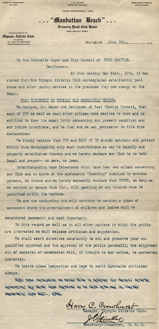In this letter, the Olympic Athletic Club responds to