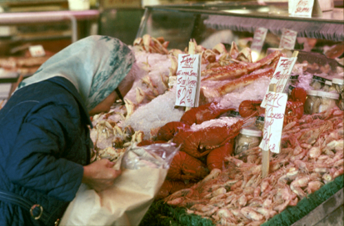 Woman shopping for seafood, 2001