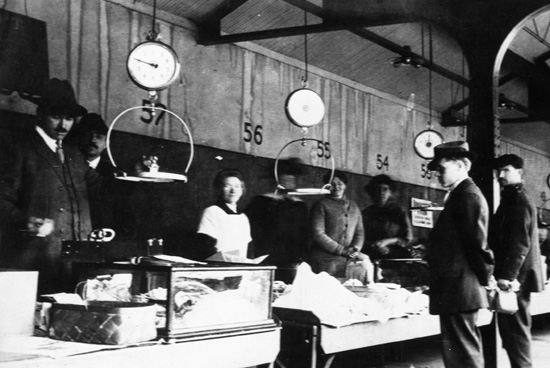 The Health Department regularly inspected food at the market - especially meat, milk and other perishable goods - and ran the Municipal Fish Market from 1917 to 1923. The Weights and Measures Division of the Department of Public Utilities monitored the accuracy of scales, and the Lighting Department provided free lighting and electricity.