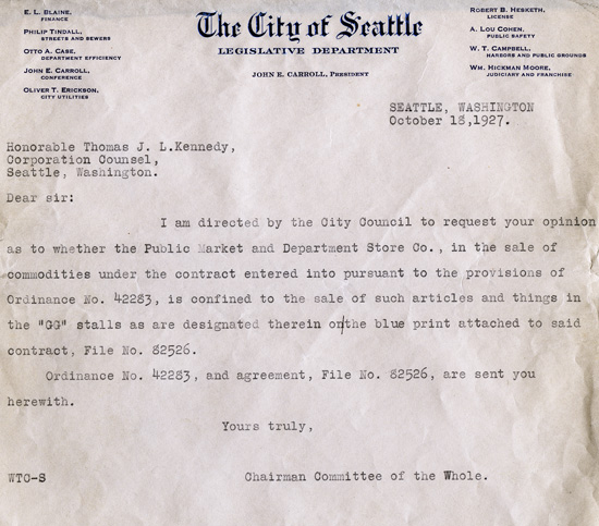 Petition of Associated Farmers of Seattle Public Market to amend Ordinance 52515 regulating farmers at the market, 1927