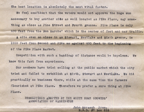 Resolution of the White Home Growers' Association for keeping public market at Pike Place, 1920