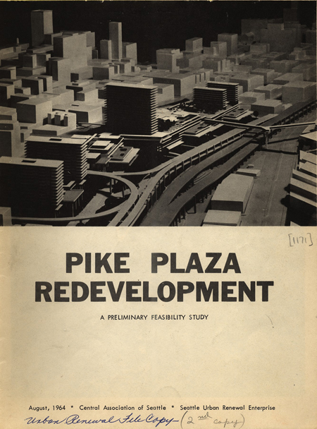 The first suggestion of impending change for the Market came in 1950, when engineer Harlan Edwards recommended demolishing it in favor of a large parking garage. While this idea went nowhere, in 1963 the business-oriented Central Association of Seattle put forward a proposal that would replace the Market with high-rise office and hotel buildings, as well as a 7-story parking garage. This plan would use federal urban renewal funds and had the support of the Mayor and City Council.