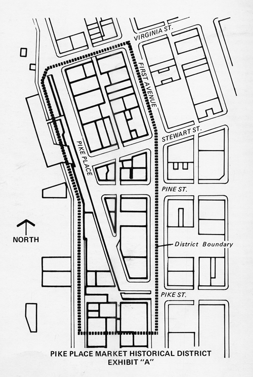 Map of newly created Pike Place Market Historical District, 1971