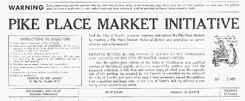 "Shall the City of Seattle preserve, improve, and restore the Pike Place Markets by creating a Pike Place Market Historical District and providing for administration and enforcement?"