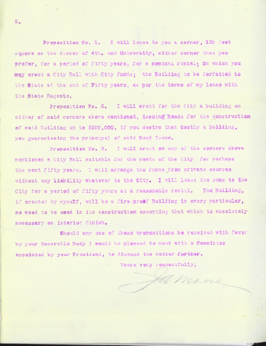Several suggestions for a new or improved City Hall came from citizens, including one from James Moore, General Manager of Moore Investment Company.