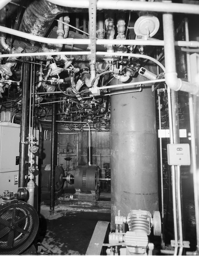 Undercrossing with tangle of pipes below the fountain, February 19, 1962
