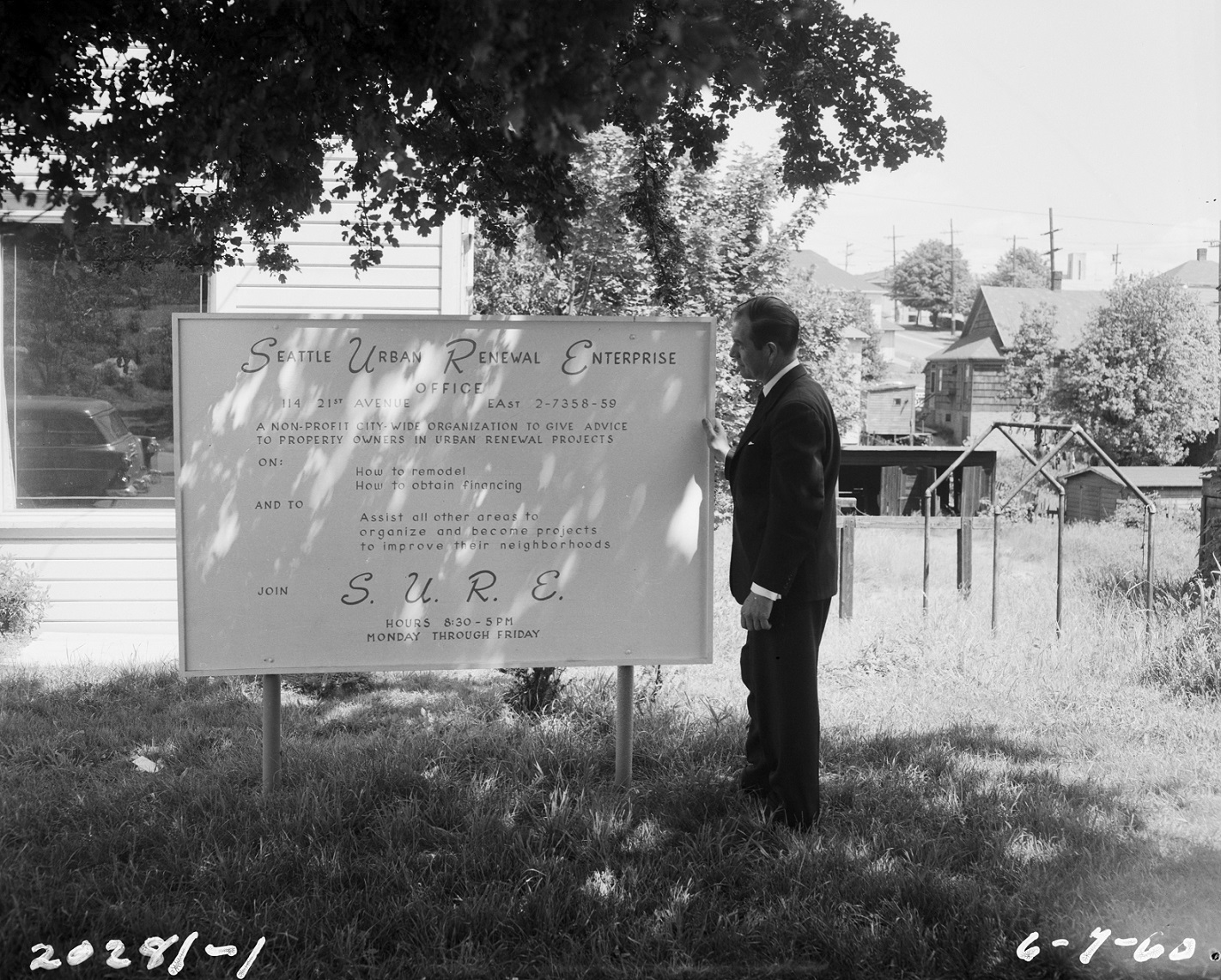 Soon after it was established, the citizen's advisory committee decided that they could more effectively promote the urban renewal program as in independent action group with its own funds and staff, while still serving an advisory function. The group incorporated as the Seattle Urban Renewal Enterprise (SURE) in November 1958. SURE's goals were to work with the City in developing the urban renewal program, provide a liaison between the city and residents, promote fundraising, help coordinate efforts to secure federal funding, and raise awareness in the city about the need for urban renewal.