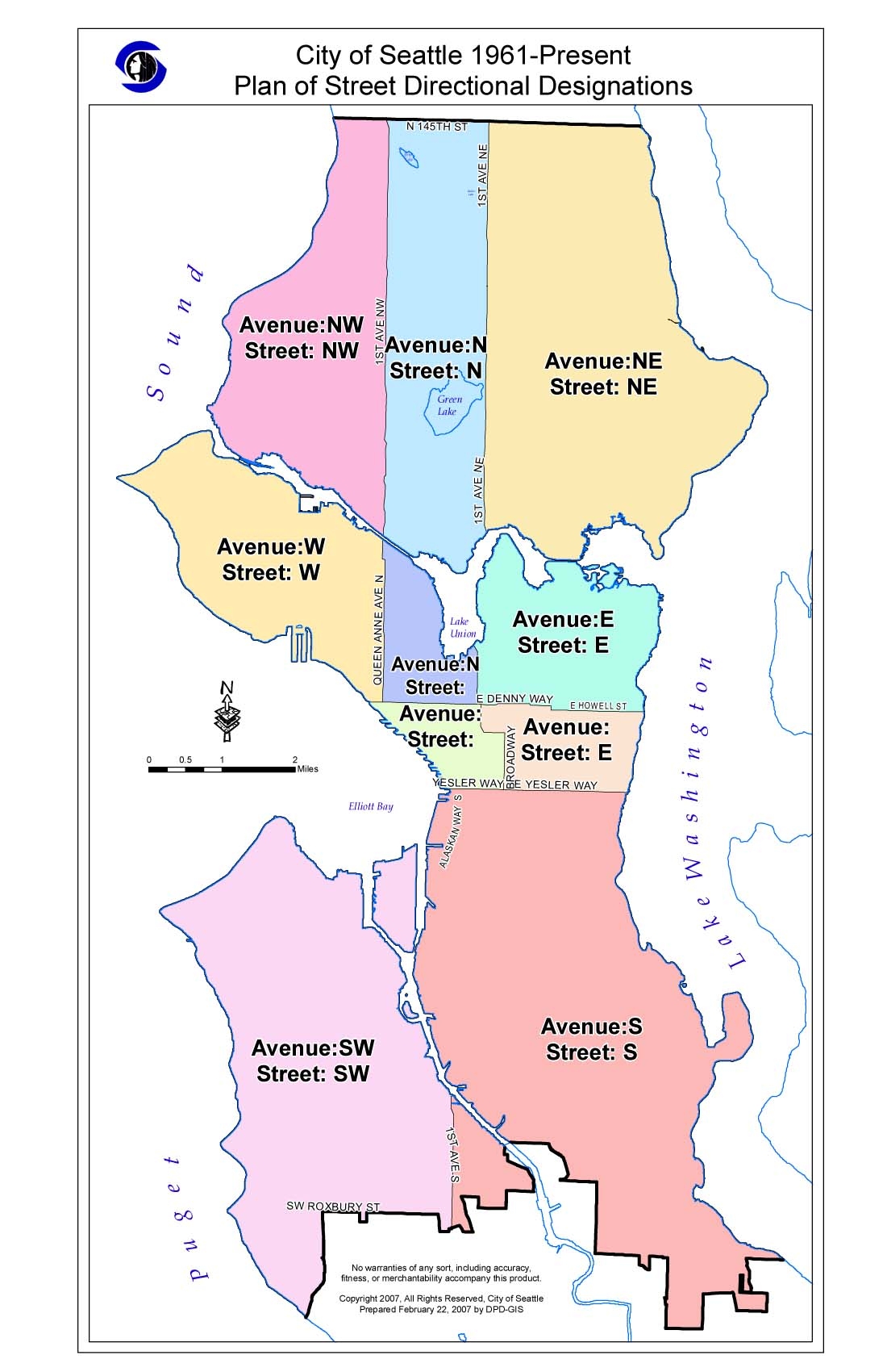 City of Seattle pre-1961 street directional designation map City of Seattle post-1961 street directional designation map