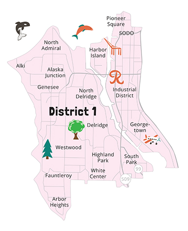 Listed here is a small selection of records in the Seattle Municipal Archives relating to neighborhoods in District 1, including West Seattle, Delridge, Sodo, Pioneer Square, Georgetown, South Park, and White Center. Many more historical resources are available; please contact an archivist for assistance.