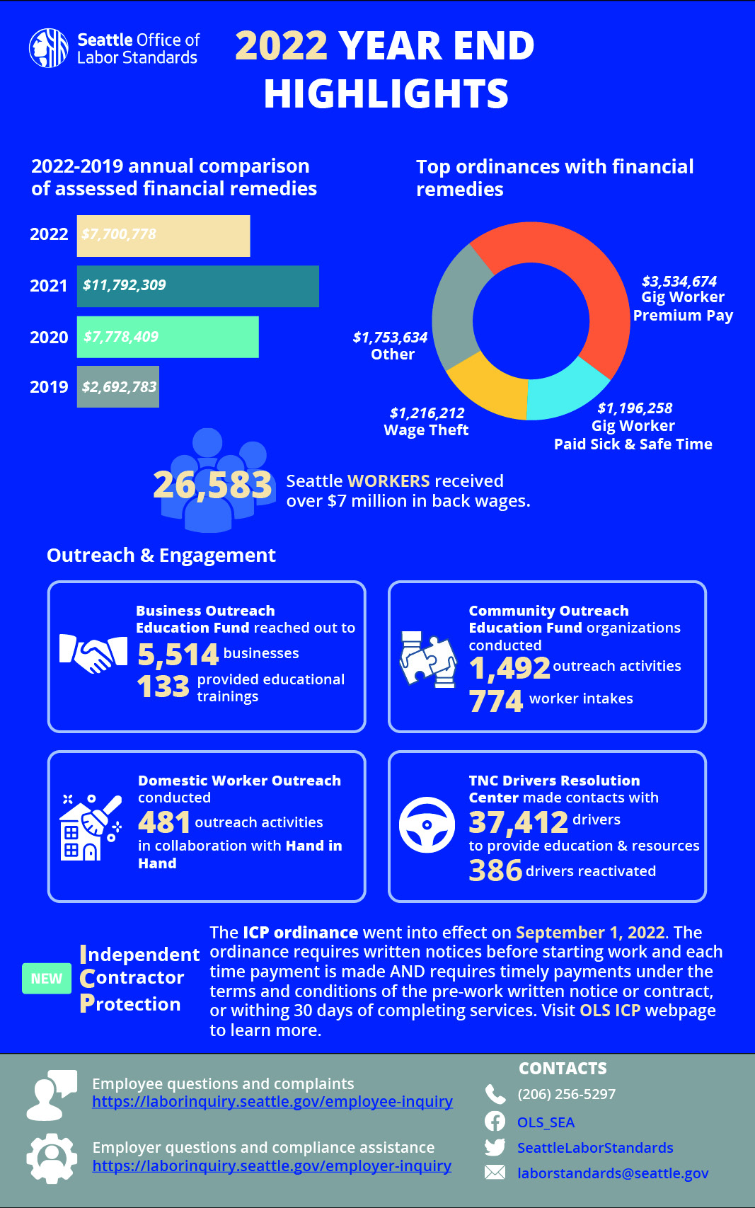 The Office of Labor Standards enforces Seattle’s labor standards ordinances to protect workers and educate employers on their responsibilities.