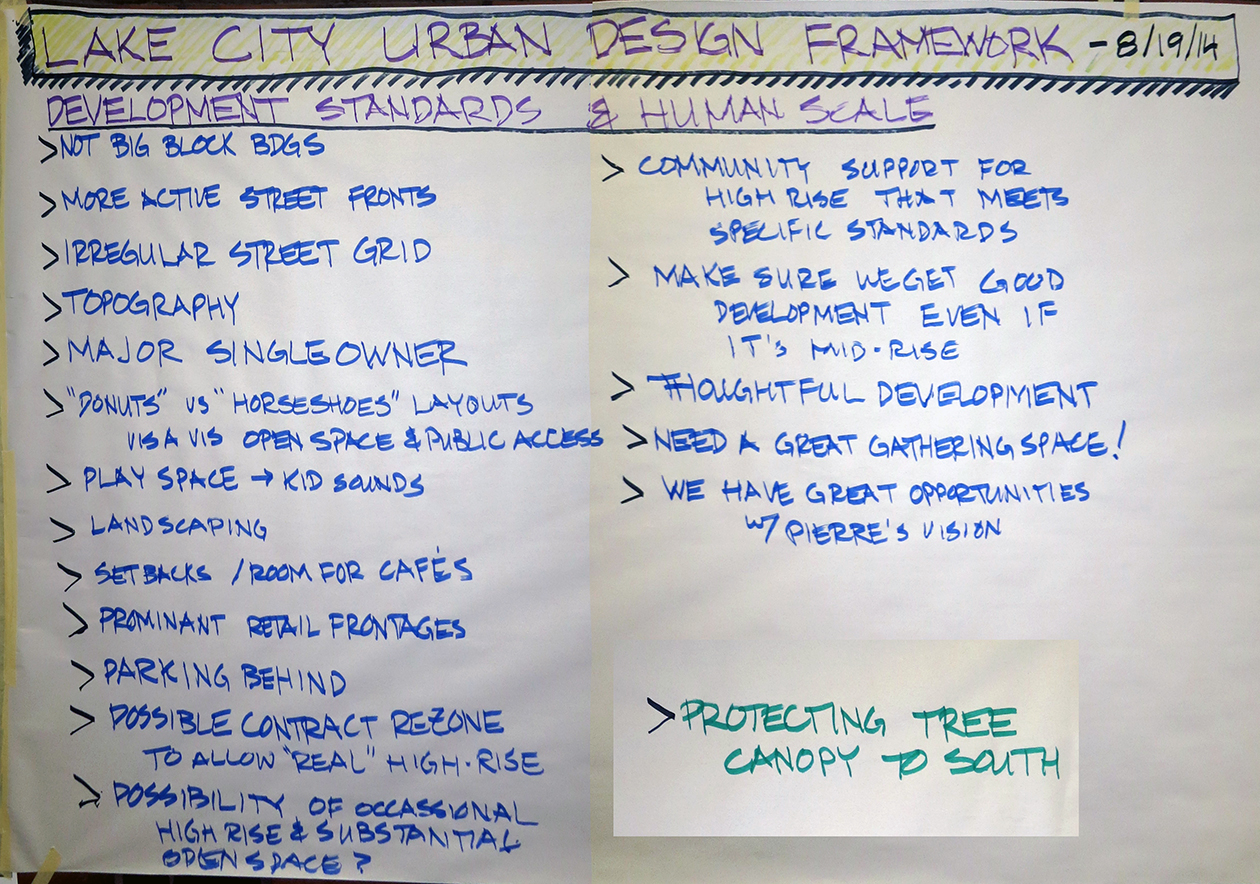 Continued discussion about project principles and "downtown" Lake City: