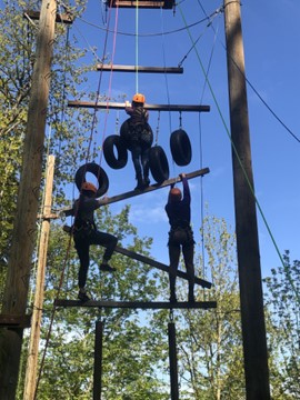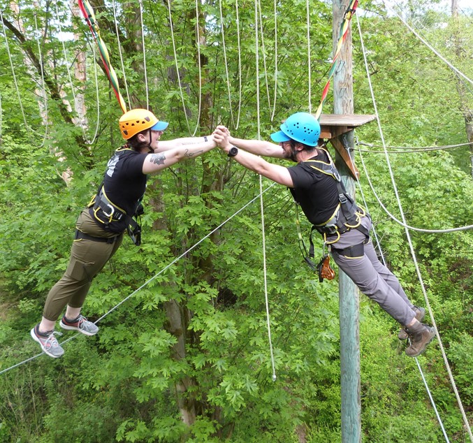 • Trapeze Jump/Leap of Faith: Climb a telephone pole and leap for a trapeze. Great for personal goal setting with group support. There are critical support roles for participants without leaving the ground.