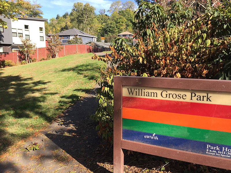 First acquired in 1970, this park originally was named 30th Ave Mini Park. After development, it was renamed for William Grose in 1983. Grose (1835-1898) was an African-American pioneer. Son of a free black restaurant operator in Washington, D.C., he spent time in the U.S. Navy, then went to California with the gold rush, and finally arrived in Seattle in 1861. He opened a restaurant and hotel on Yesler Way called "Our House." In 1882 he bought 12 acres along E Madison St from Henry Yesler, which became the foundation of the central district African-American community.