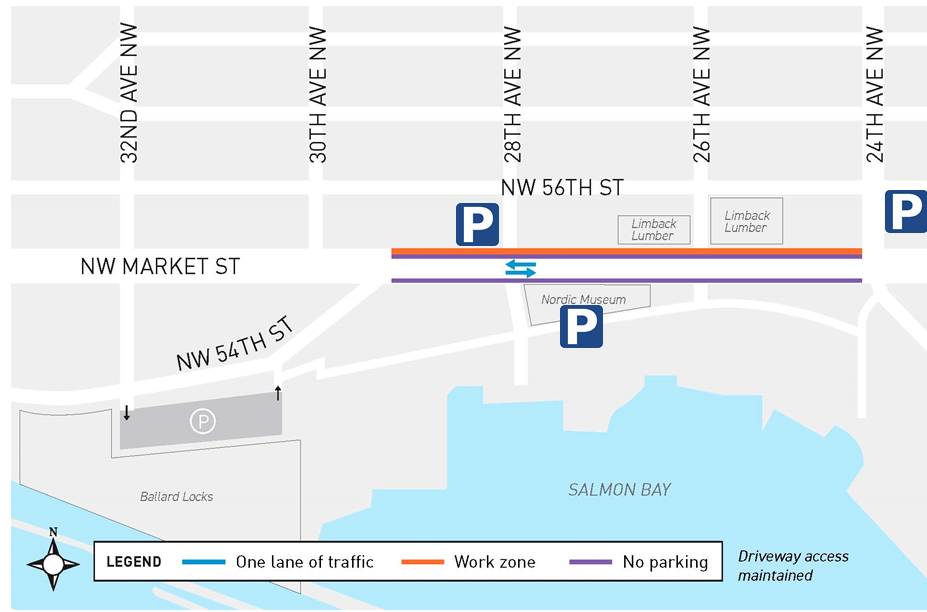 Transit upgrades on NW Market St as part of previously completed work on the Ballard Multimodal Corridor Project.