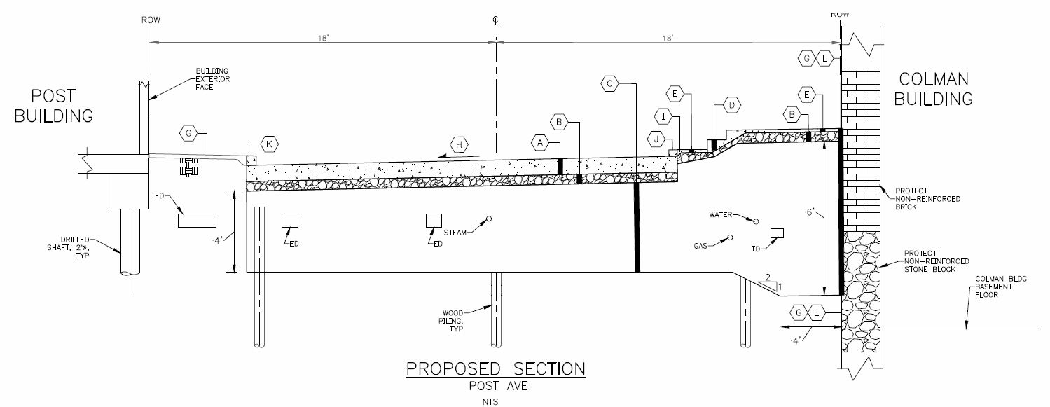 As part of the work, voids below the sidewalk adjacent to the foundation of the Colman Building will be filled as well - including areas under the Marion Str Pedestrian Bridge which connects 1st Ave to the Washington Colman Ferry Dock.