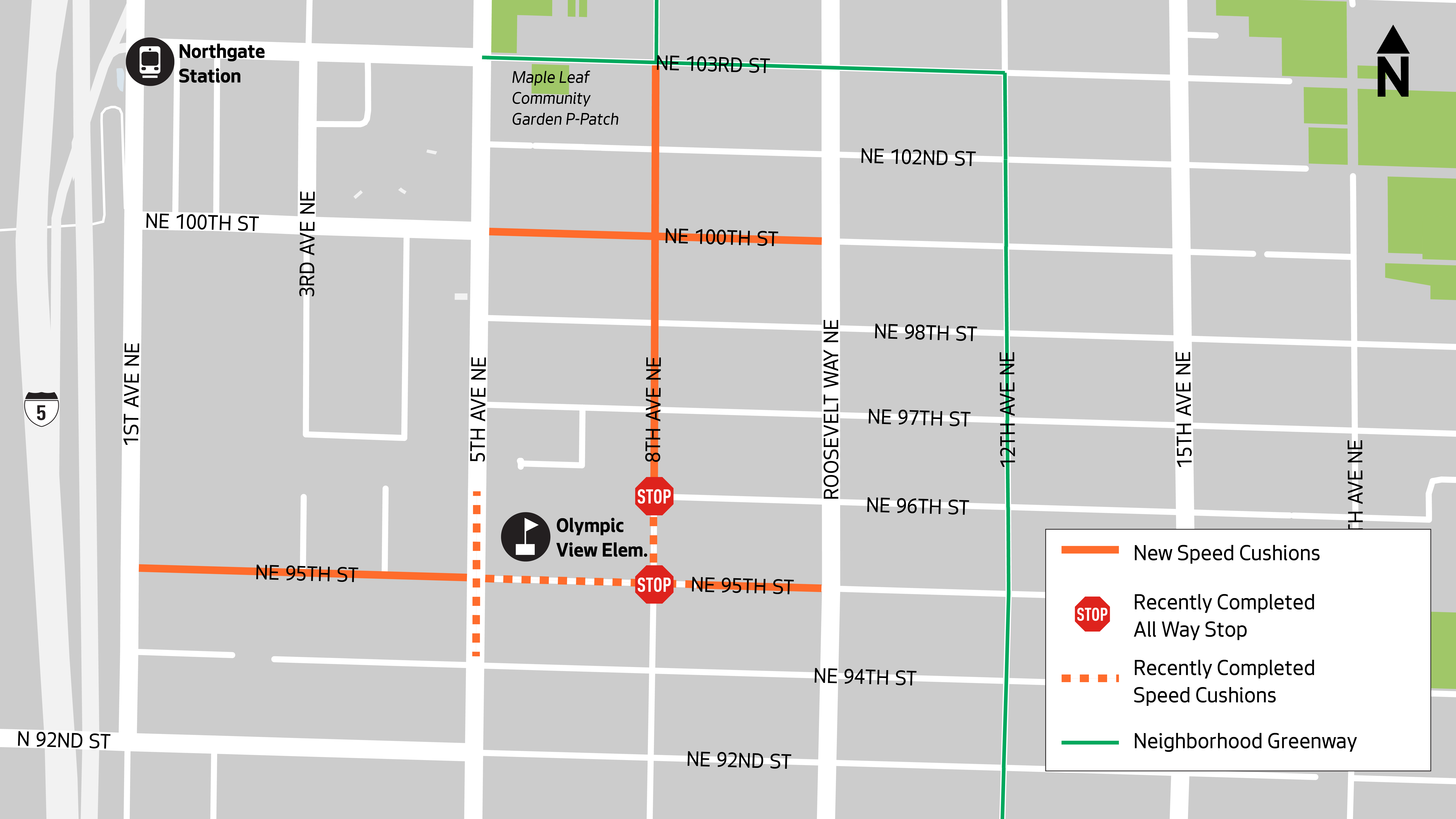 - NE 95th St from 1st Ave NE to 5th Ave NE