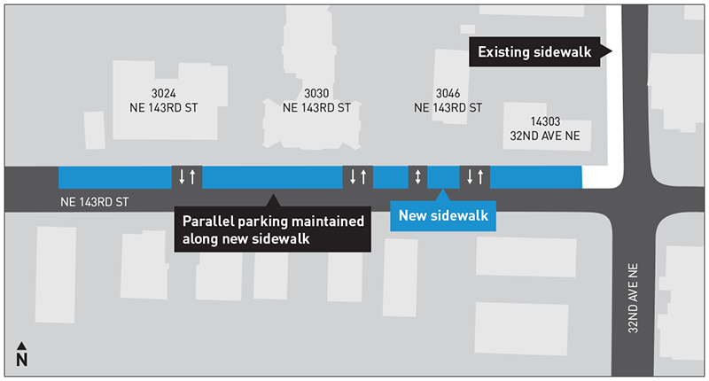 Project area map includes final design of the new sidewalk on NE 143rd St.