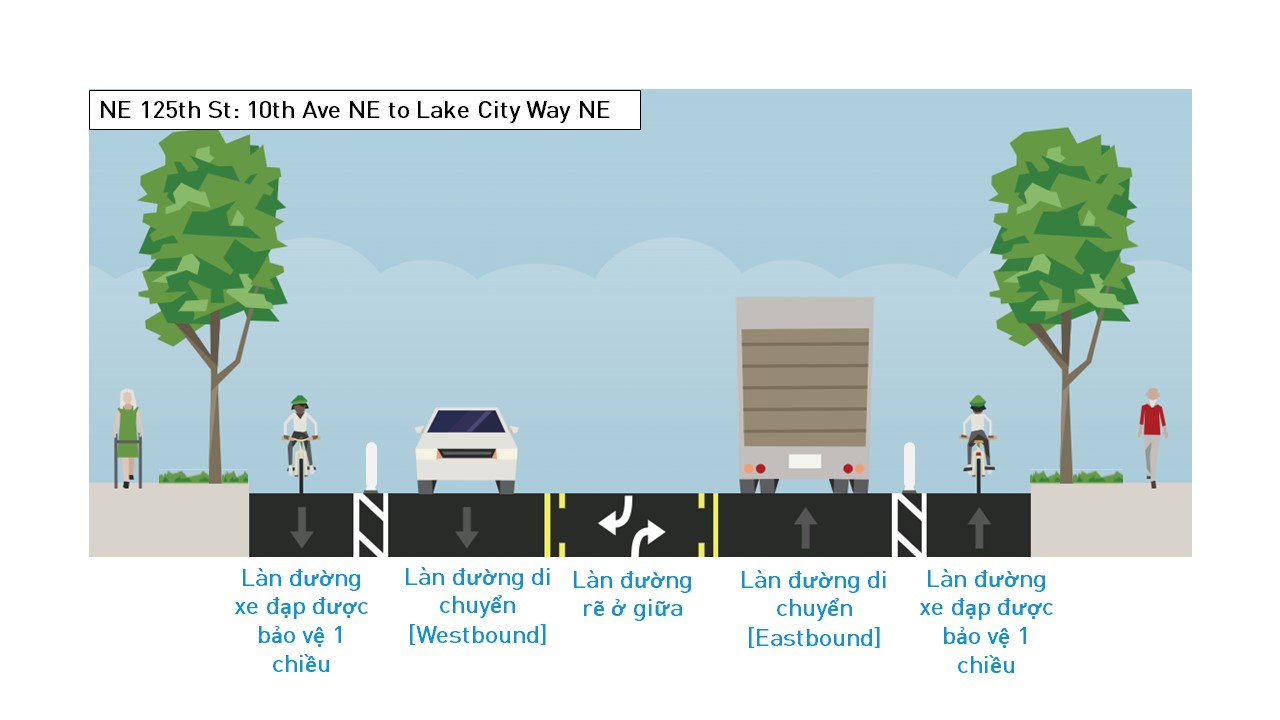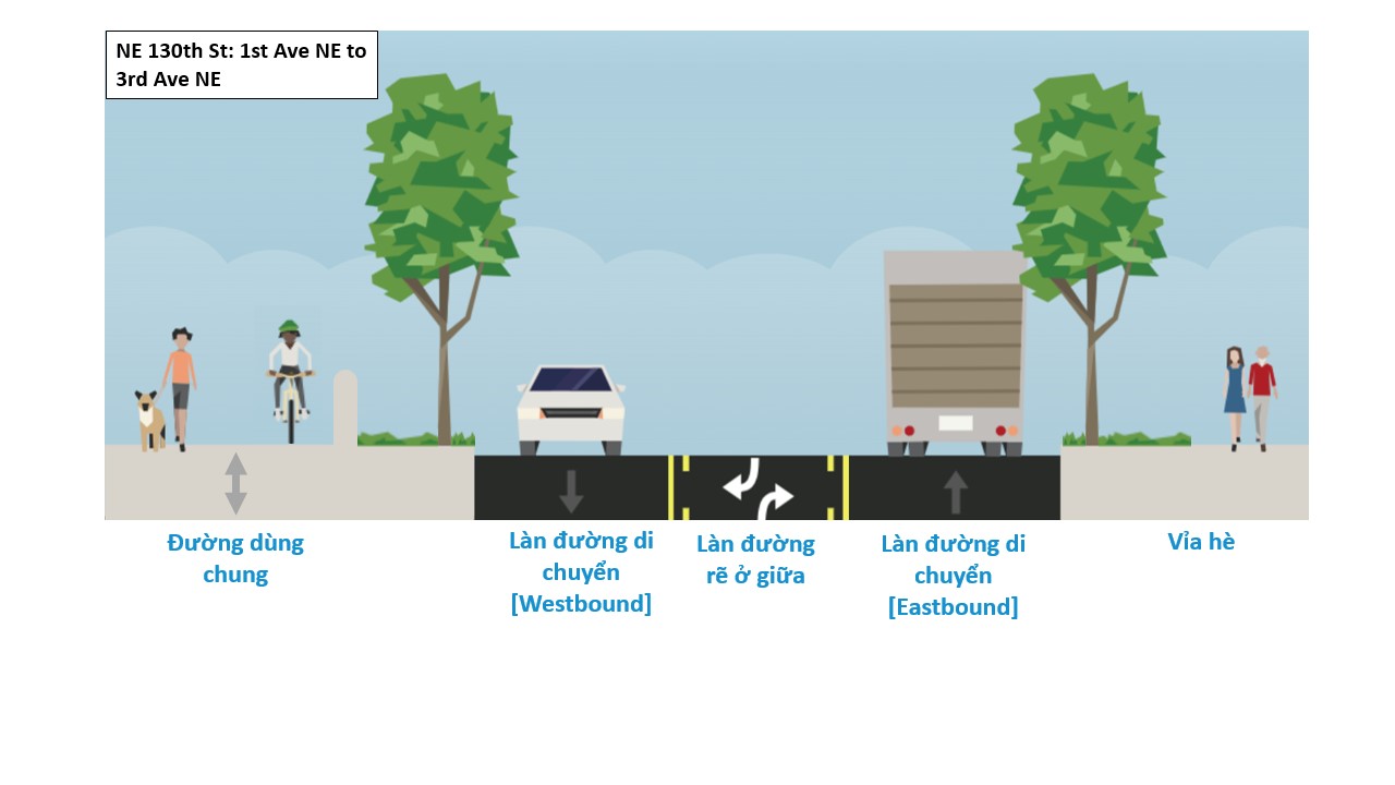 - Gửi email cho chúng tôi theo địa chỉ NE130thSt_NE125thSt_Project@seattle.gov hoặc gọi cho chúng tôi theo số (206) 400-7515