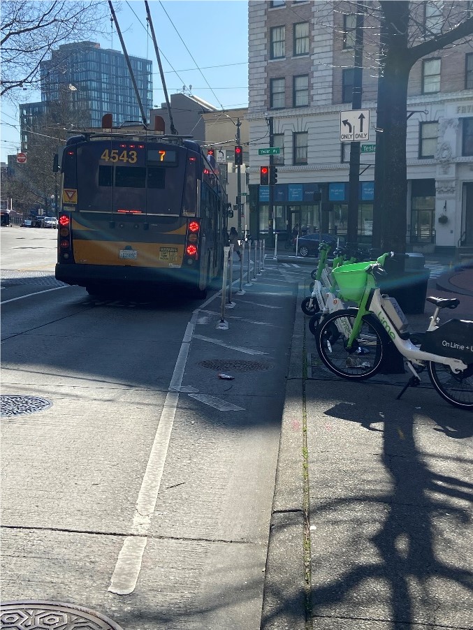 The project was also selected because of high collisions around 3rd Ave and Yesler prior to the installation of the pilot project. It's also a safety priority identified within the Bicycle and Pedestrian Safety Analysis (BPSA).