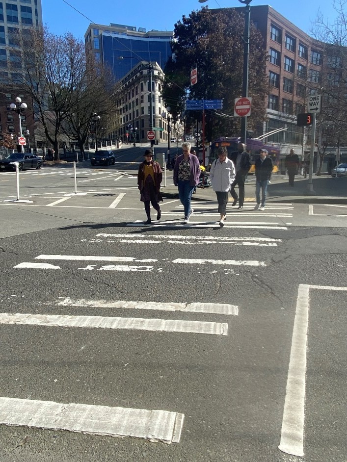 The intersection of 3rd and Yesler has experienced a high number of collisions for people walking and biking. In particular, drivers are prone to hitting pedestrians in the west and north crosswalks of 3rd and Yesler. ​To reduce the number of collisions, we are making safety improvements that we have tested over the past two years. Read more below about our safety improvement pilot and how it has become a fixture in the Pioneer Square area.