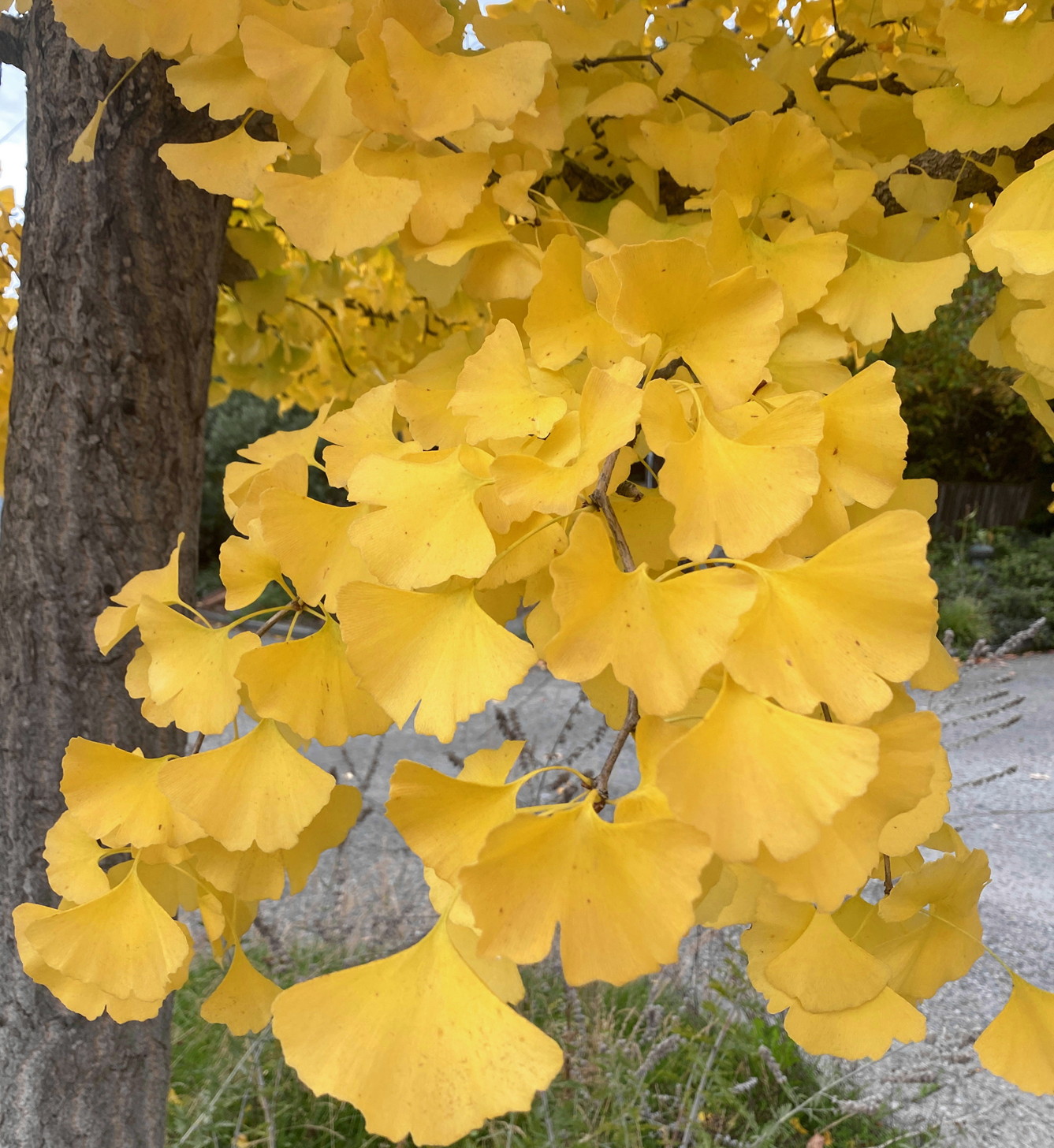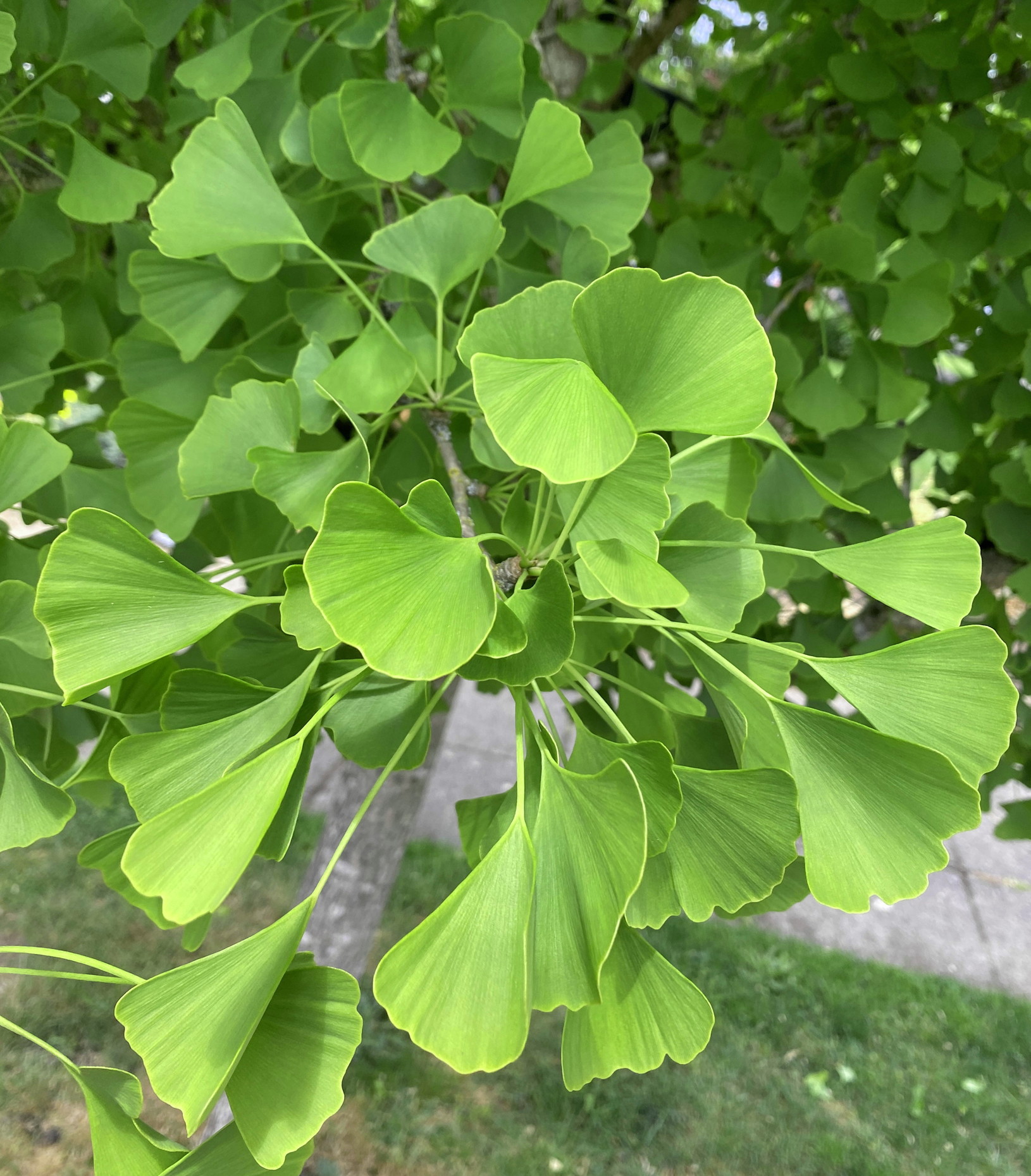 Iconic fan shaped leaves with a scalloped margin are a medium green in summer and a beautiful gold in fall. The leaves look similar to the leaflets on maidenhair fern thus, the other common name for ginkgo is maidenhair tree.