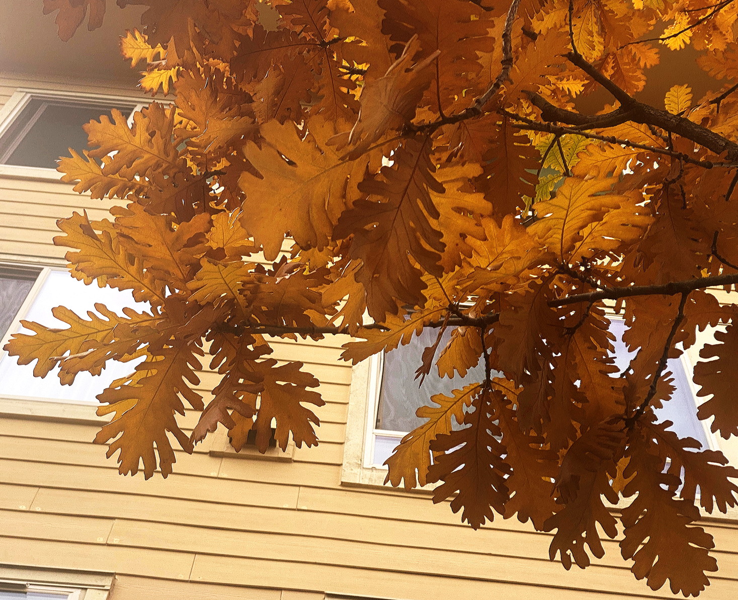 Glossy green with long rounded lobes like fingers. Yellow-russet fall color.
