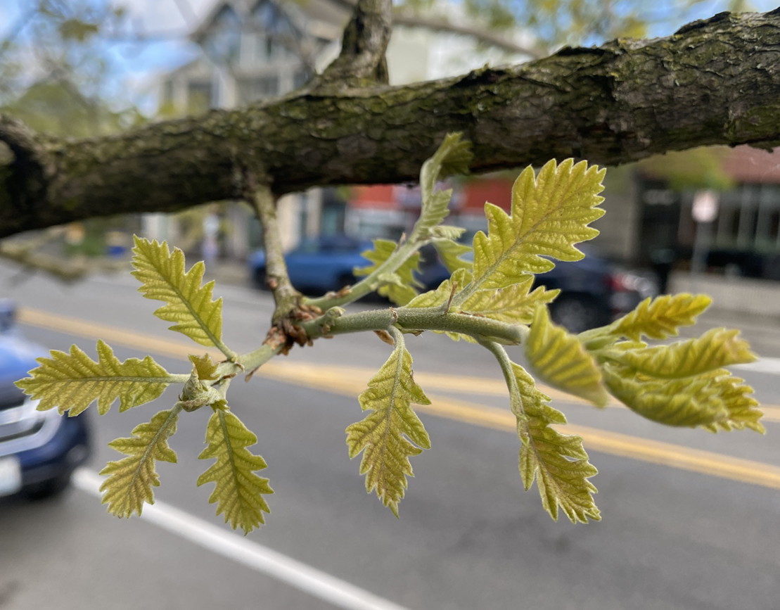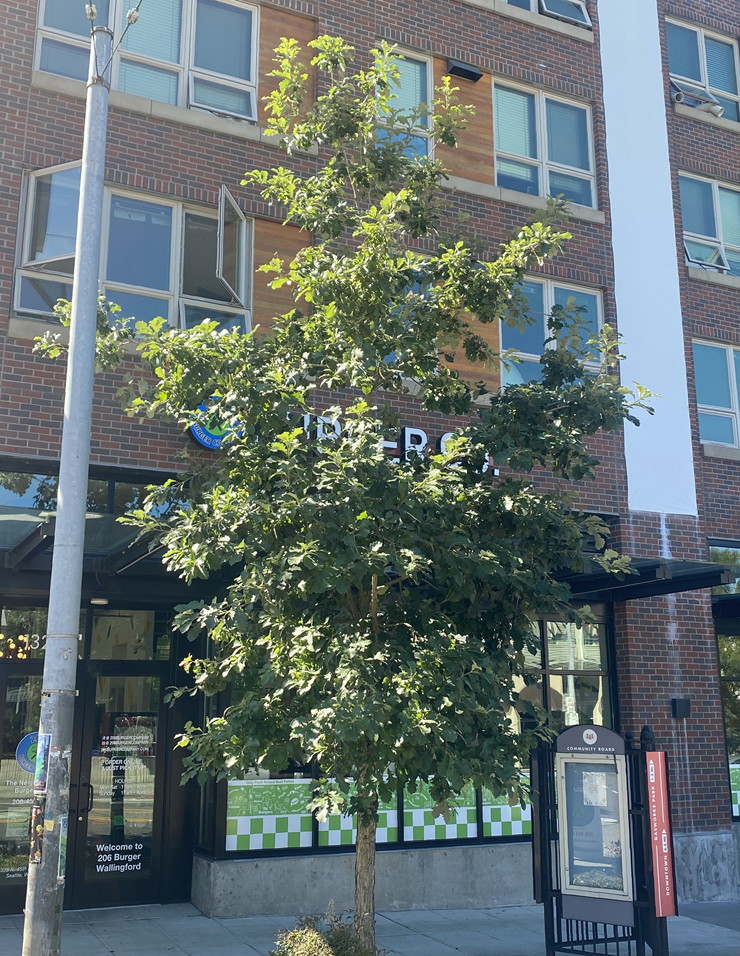 An upright cultivar of the bur oak that has a strong central leader. Its glossy green leaves turn yellow in fall and are resistant to leaf diseases. The acorns are smaller than typical bur oak acorns. Once established, this tough tree is heat and drought resistant.