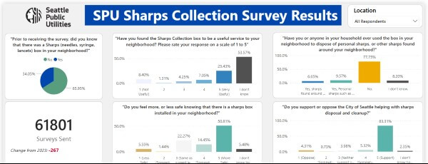 - Personal sharps disposal was highest in Othello Park (18.03%), Albert Davis Park (17.44%), Airport & Holgate (16.67%), and Mt. Baker (15.38%).